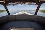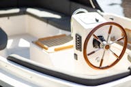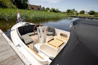De Langweerder Sloep 6.50 classic is een ruime sloep voorzien van luxe en comfort. Met een diepgang van 70 cm en een maximale doorvaarthoogte van slechts 1 meter kunt u vrijwel onder alle bruggen doorvaren. Door de comfortabele zit en rugkussens geniet u optimaal van een dag op de Friese Meren. Verder zit er een neerklapbare zwemtrap aan de achterzijde bevestigd zodat u makkelijk in en uit het water kunt komen. Op de voorzijde zit een buiskap wat schaduw creëert tijdens een zonnige dag en de kuip droog houd tijdens een plaatselijke regenbui. Deze kap is volledig neer te klappen waardoor gehele kuip open wordt en u lekker kunt zonnebaden.